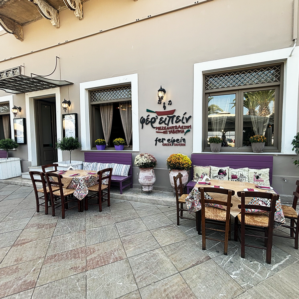 海沿いにもタベルナや飲食店がずらりと並び、青々としたアルゴリコス湾を眺めながら、港町ならではの新鮮な魚介料理などを楽しめます。