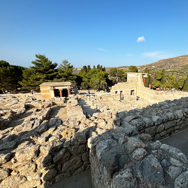 イラクリオンの街から南方面に位置するクノッソス宮殿。古代にクレタ島にて栄えたミノア文明のもと建設された広大な宮殿です。