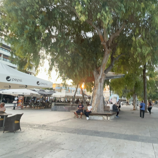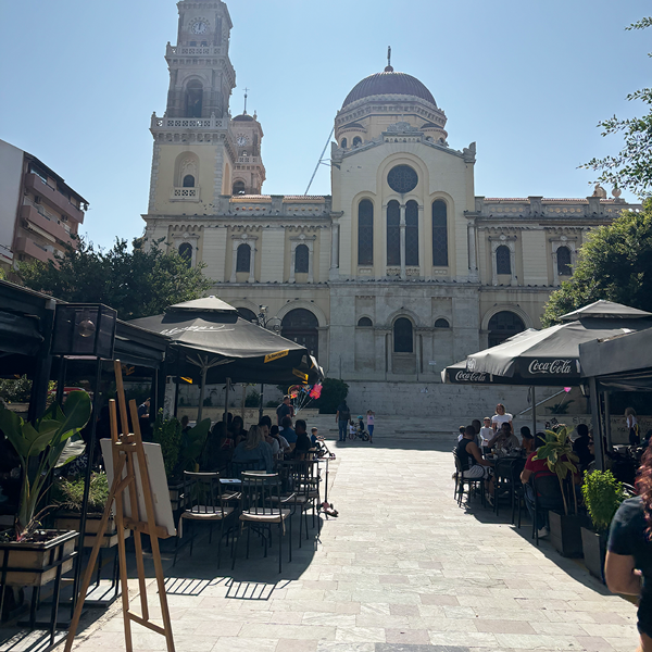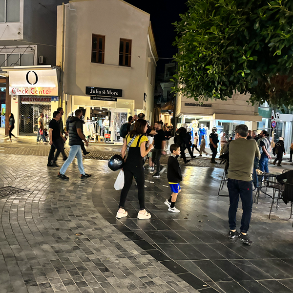 イラクリオンの街の中心ともいえる広場。多くの人々で賑わう。