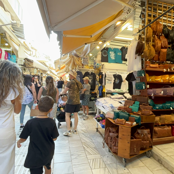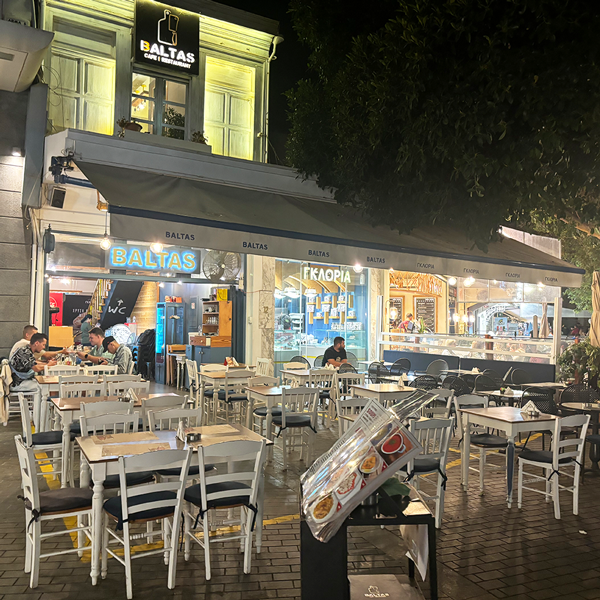 クノッソス堪能後、エレフテリアス広場で夕食を取ることに。注文したのはビール、ドルマダキア、そしてアテネでハマったムサカをリピート。先着のビールを歩き疲れた体に染み込ませながら、辺りの賑わいを見渡します。