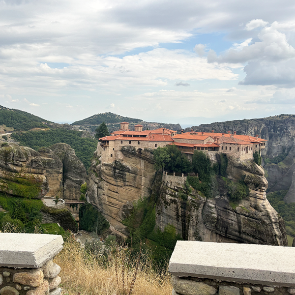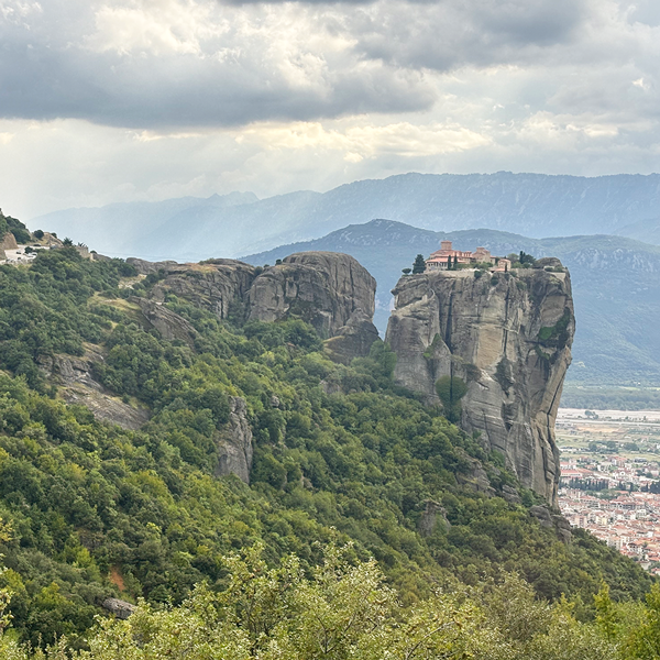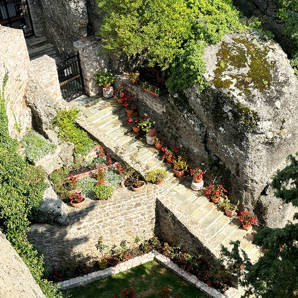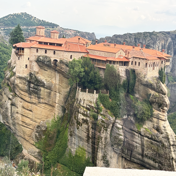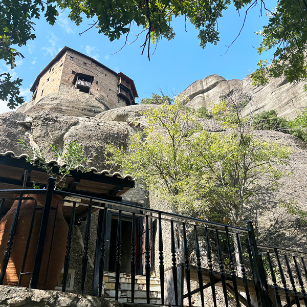 高さ565メートルの岩山に建てられた修道院。ここに行くための階段はハード。