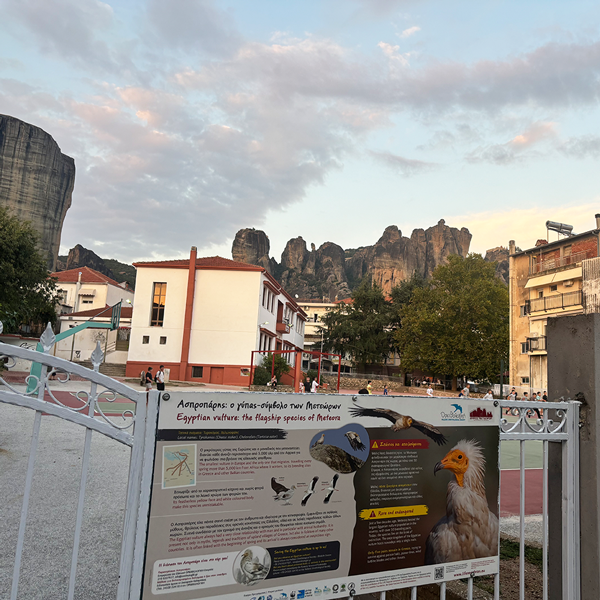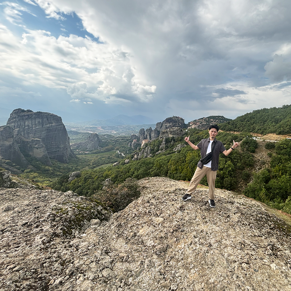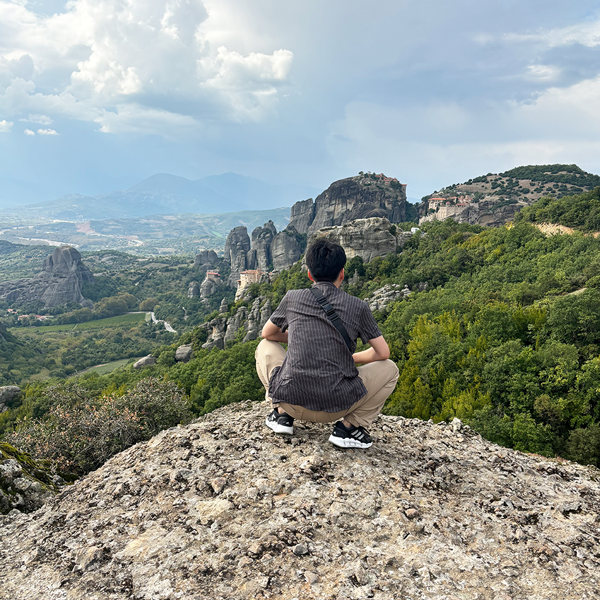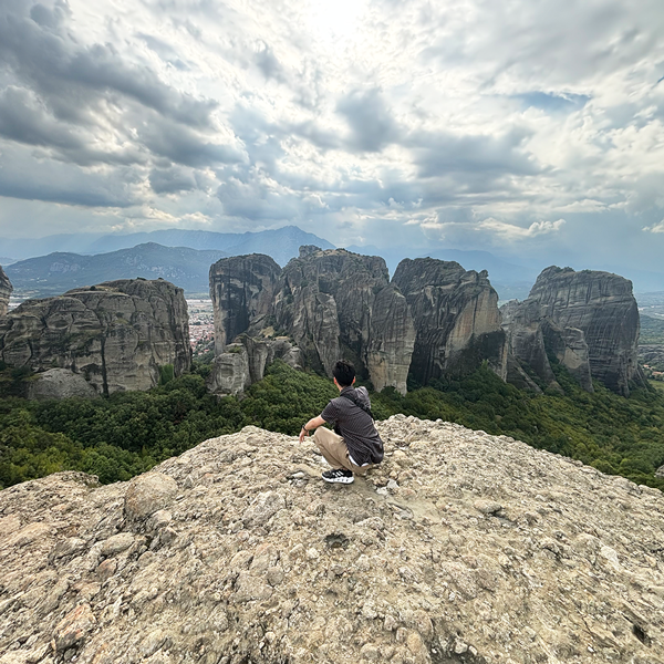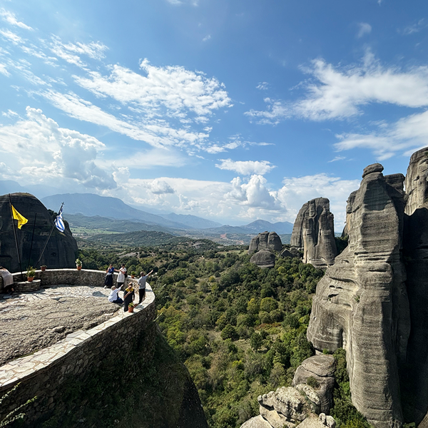 メテオラの絶景を一望できる丘。足元に注意。