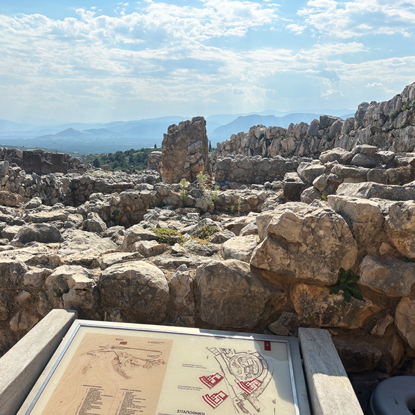 ギリシャ本土と半島の付け根の地域「コリントス」から約30kmの位置するミケーネ遺跡。ペロポネソス半島はかなりの田舎で、半島内の各遺跡へのアクセス手段は主にバスなどになりますので、バスツアーを利用するのがおすすめです。