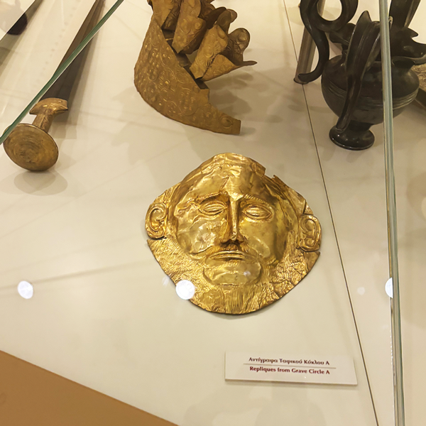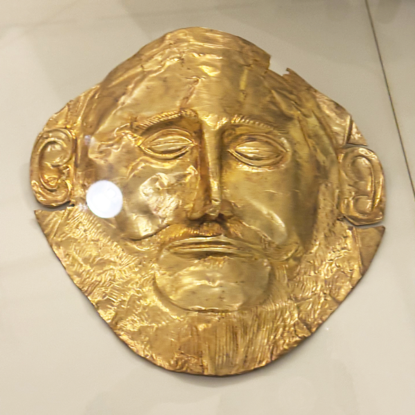 出土された「アガメムノンの黄金のマスク」はアテネの考古学博物館に展示されていますが、レプリカはミケーネ遺跡内の博物館でも見る子ができ、どのような形や色であったのかが確認できます。