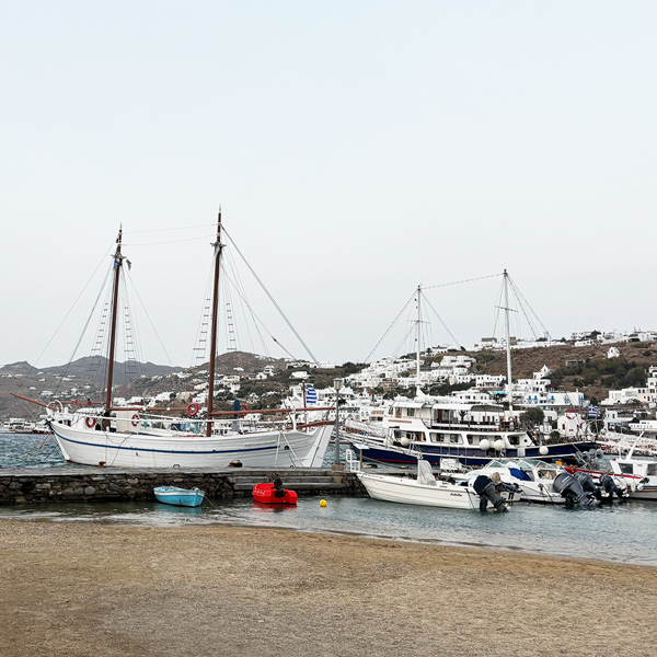 ミコノスの町に往来する人々に欠かせない、湾状の港。